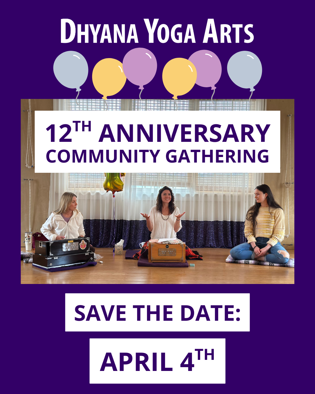 Topics for upcoming workshops will be announced soon for the dates below. These will include: Bhakti/Mantra (Yoga of the Heart), Ayurveda, Yoga Sutras/Philosophy, Restorative Yoga, Pranayama (breathing practices), Chakras & Subtle Body and more… if you have a topic you want to explore, let us know at info@dhyanayogaarts.com.